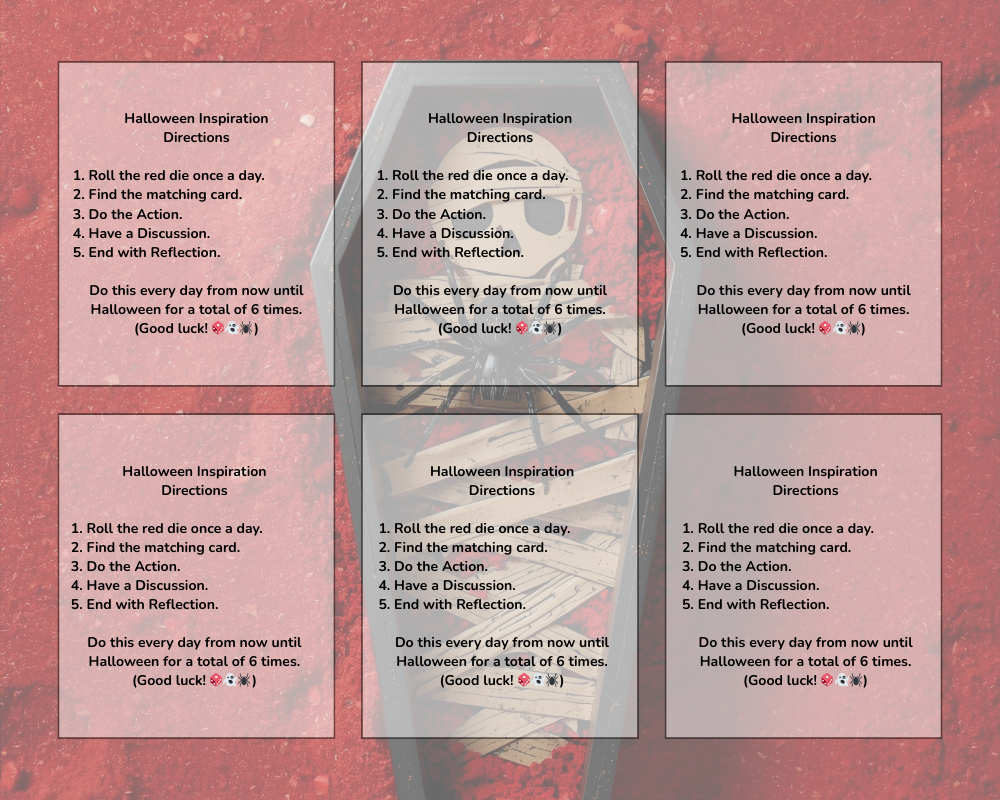 - 6 Halloween-themed Inspiration Cards (Action, Discussion, Reflection)